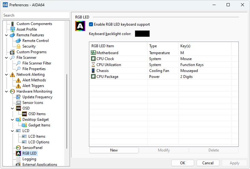 Configure the key where the RGB LED effect will be displayed. Only applicable when the "Single Key" item type is selected.